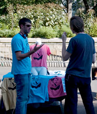 HoldTheMusic shirts sold in Union Square Park in New York City. Our display featured our original design. We were pleased with the response, including an offer to write about HoledTheMusic on a local fashion blog. Since then, we've had the creative wheels turning. With two new designs and many more to come, you can look forward to spotting HoledTheMusic shirts circling around town.